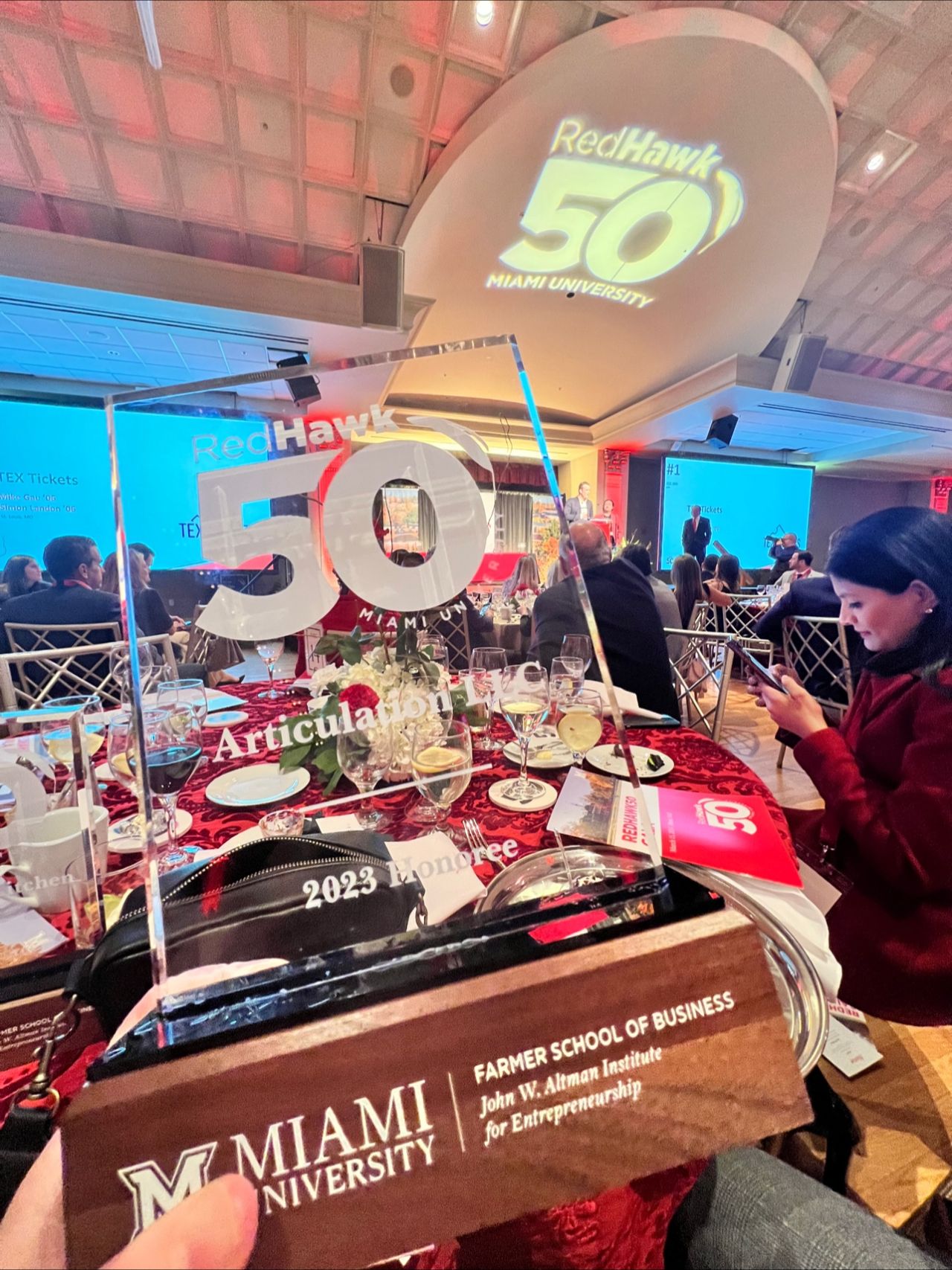 I can be a RedHawk50 honoree – given to 50 Miami University alumni founded or led businesses that had the highest growth the last three years. (Go Team Articulation!) This fabulous program was celebrated for the first time by the Miami University Farmer School of Business and John W. Altman Institute for Entrepreneurship.